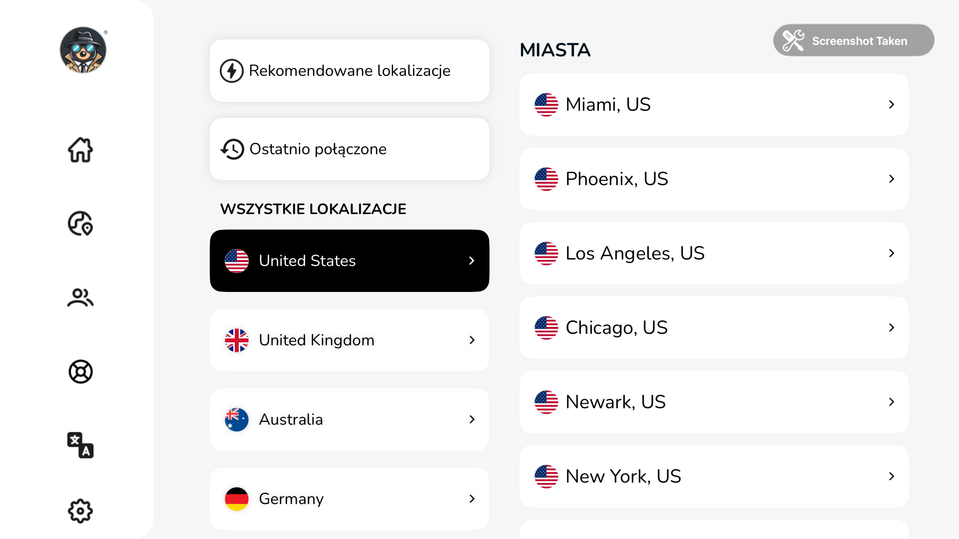 Ta funkcja pozwala Ci odkrywać i łączyć się z różnymi miastami w wybranym kraju w aplikacji UncensorVPN.