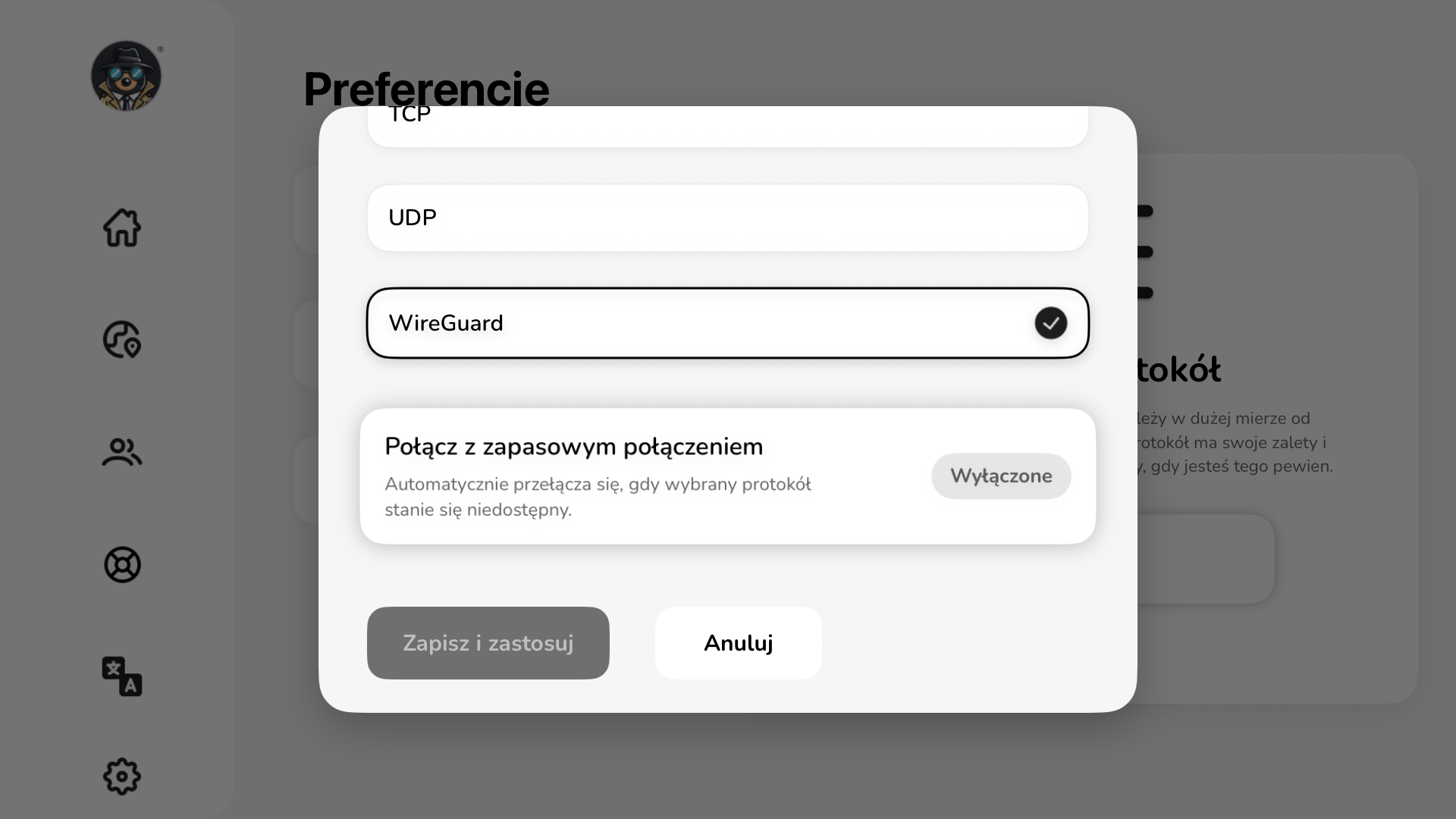 • Connect to Fallback: Ta opcja połączy Cię z następną najlepszą dostępną możliwością, jeśli nie uda Ci się połączyć z wybranym protokołem.