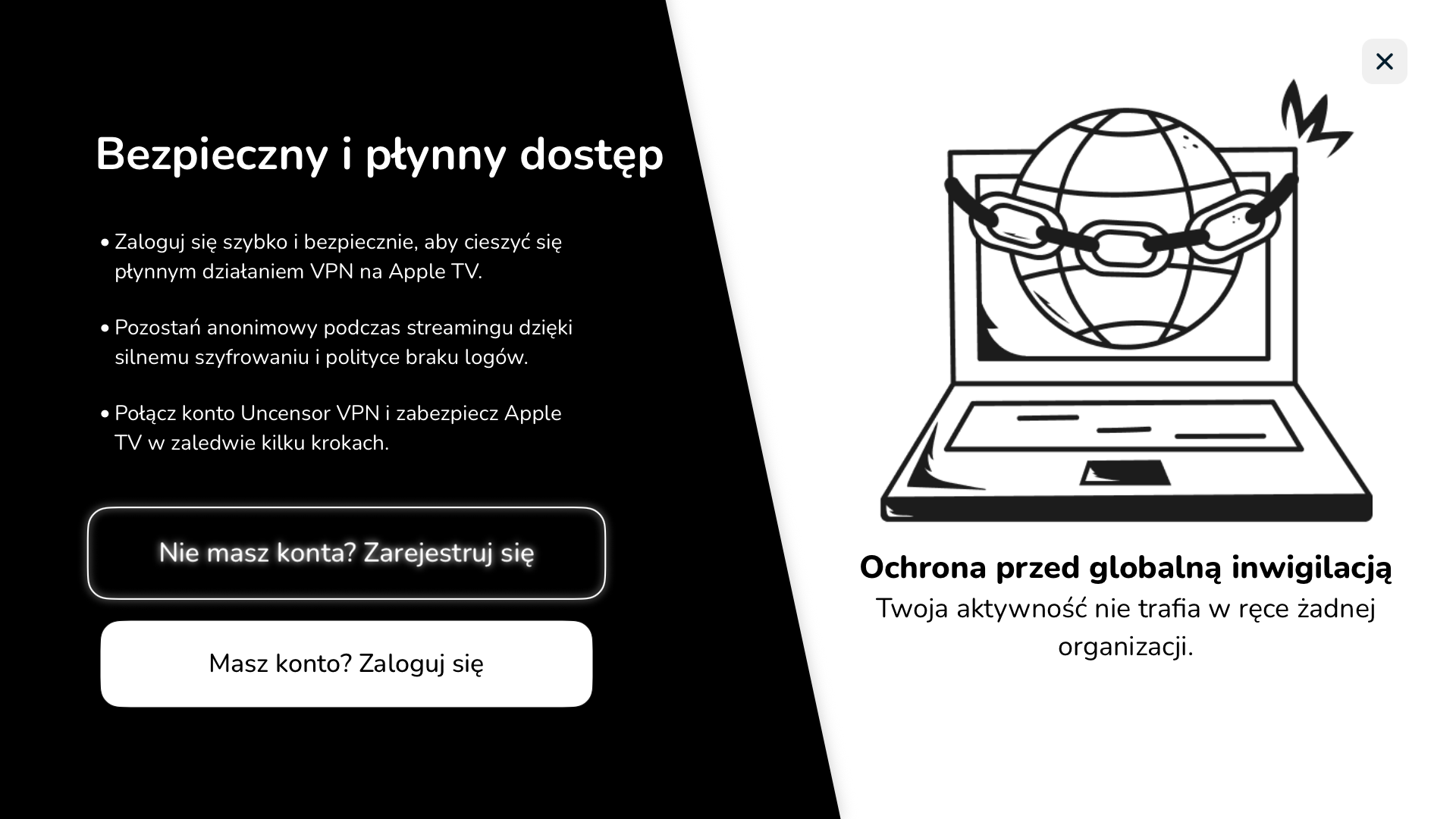 Łatwo skonfiguruj UncensorVPN na swoim Apple TV i ciesz się bezpiecznym, płynnym oraz prywatnym oglądaniem swoich ulubionych filmów i programów.