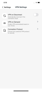 • In the App Settings tab, you will be able to see VPN On Disconnect option.