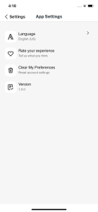 • In the App Settings tab, you will be able to see the Clear my preferences option.
